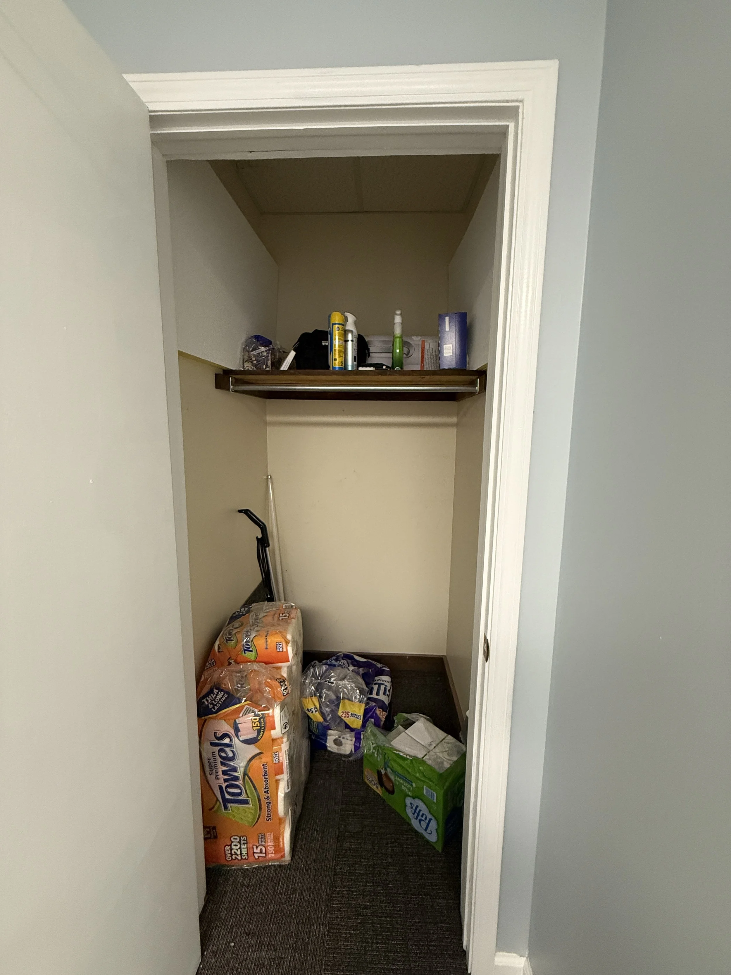 Suite includes a reception room, 4 offices, a kitchenette, a private restroom, and 2 storage closets.